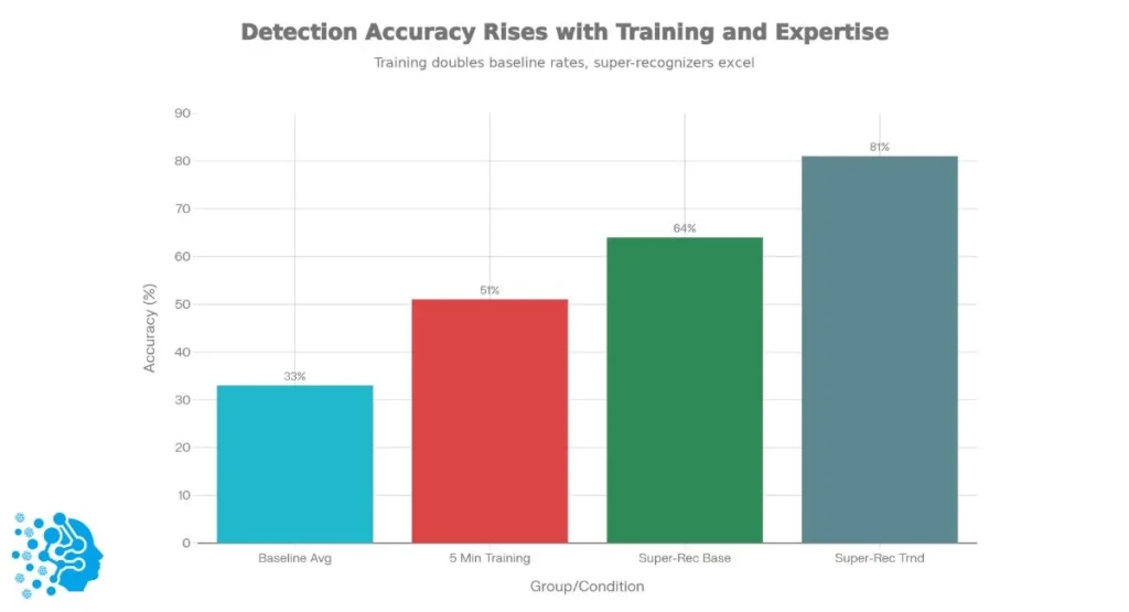 You can train to detect AI faces in minutes. A Royal Society study shows that five minutes boosts accuracy from 33% to 51% for the average person and from 64% to 81% for super-recognizers.